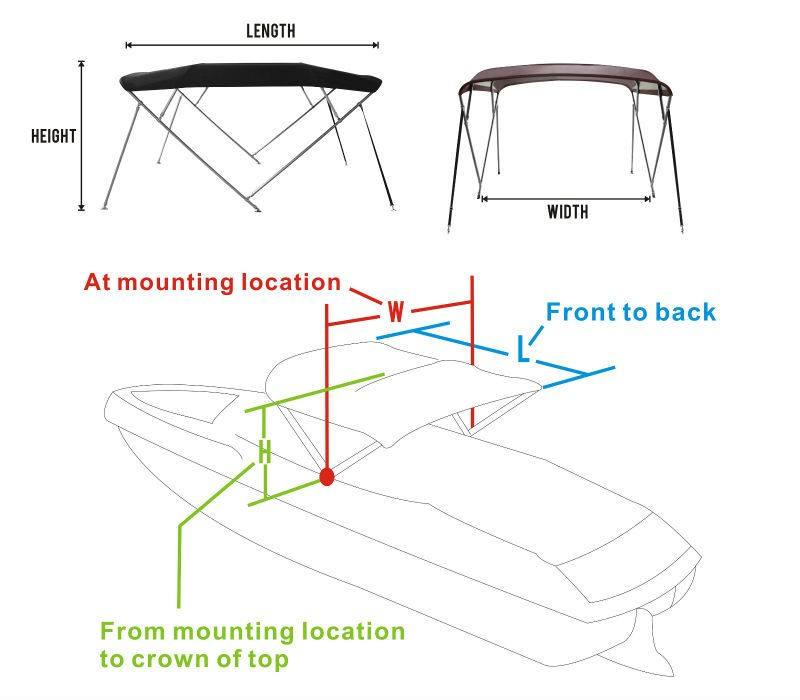 Height: Consider the primary use of the Bimini to select the appropriate frame height. Do you want to be able to stand under it? With fish below? Stand on the deck and measure upward from the selected mounting point to get an idea of how much space you will have after installing the Bimini.